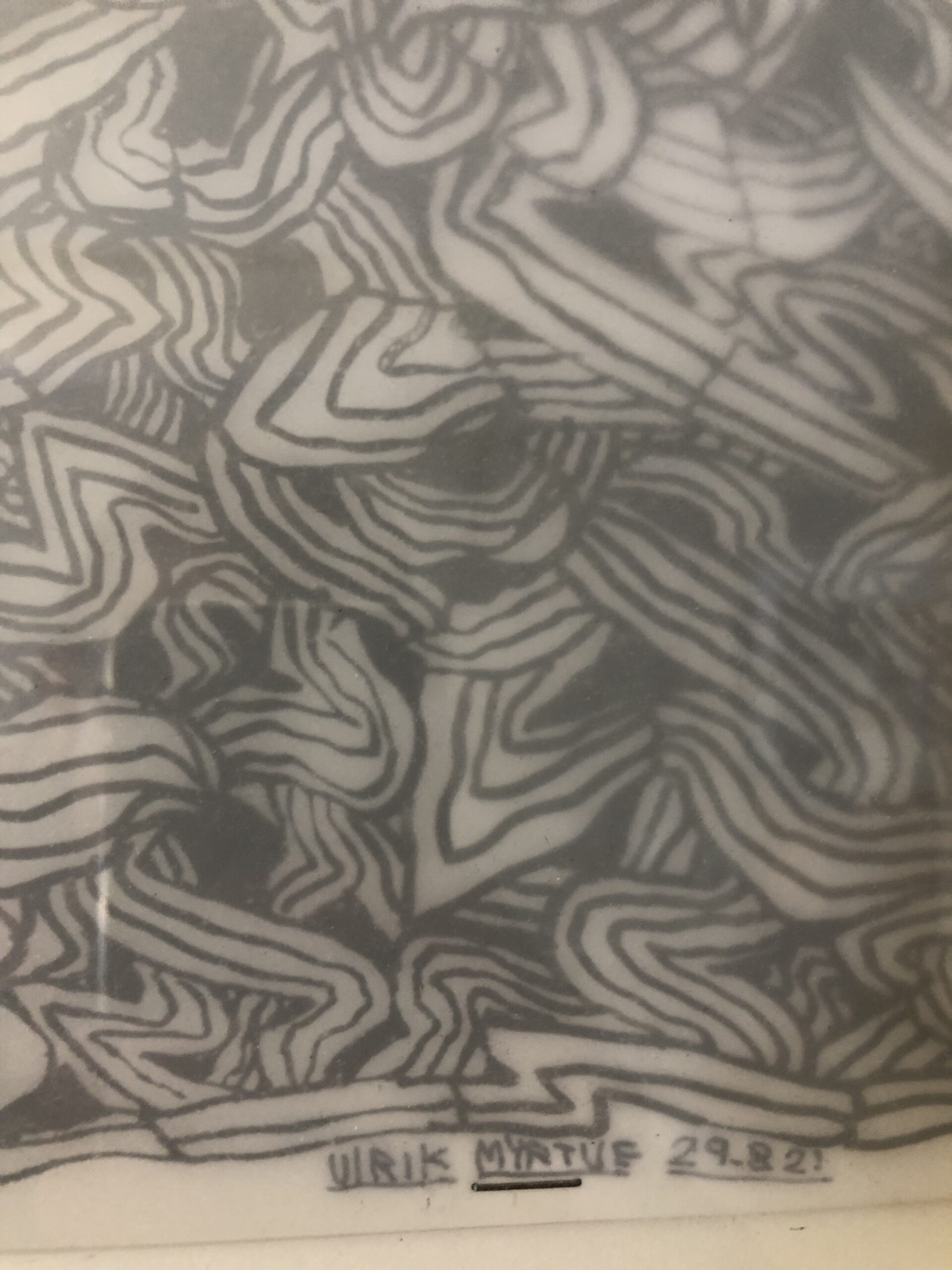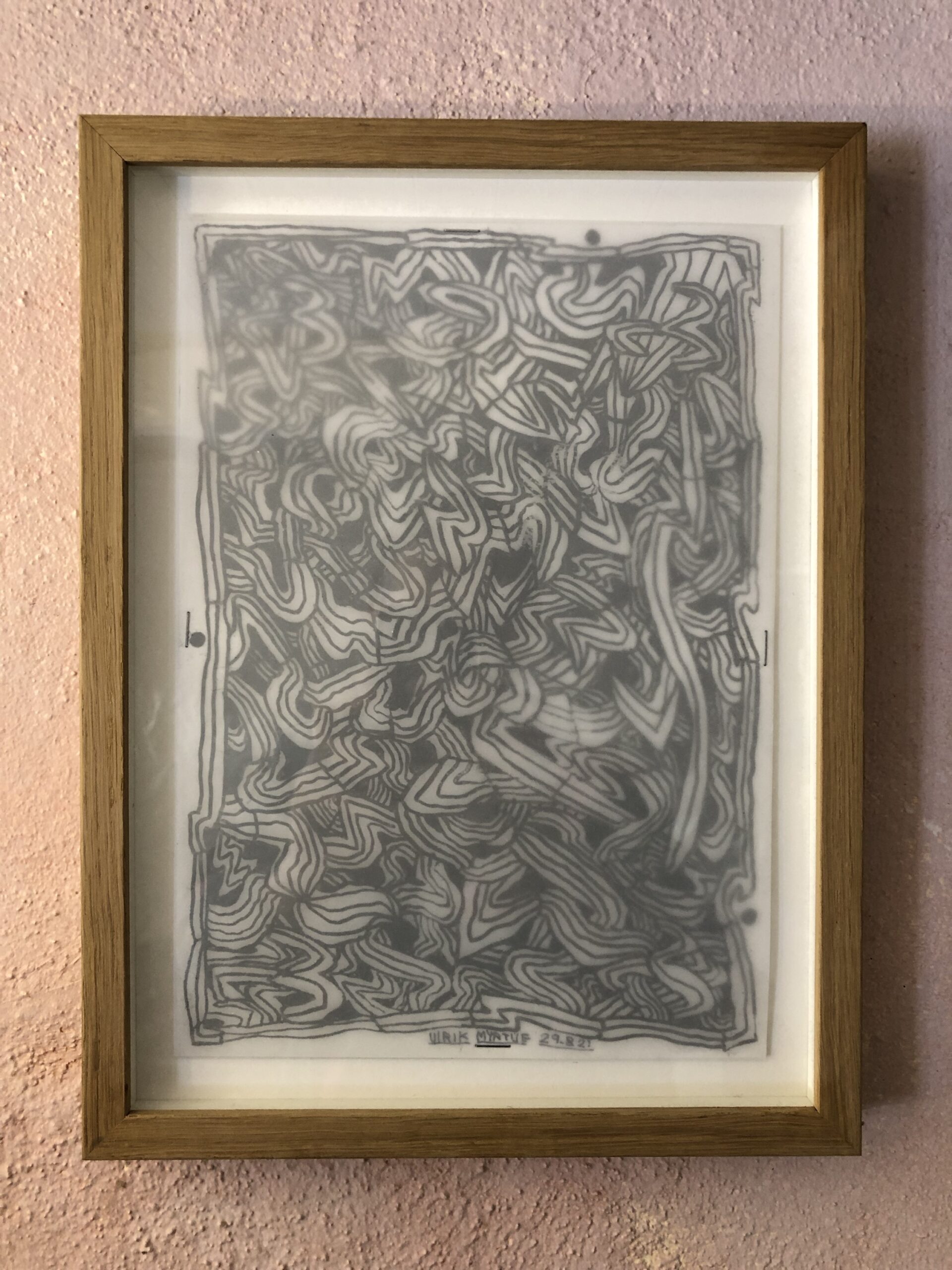 Tusch på papir. Monteret på kalkpapir. A4. Indrammet.