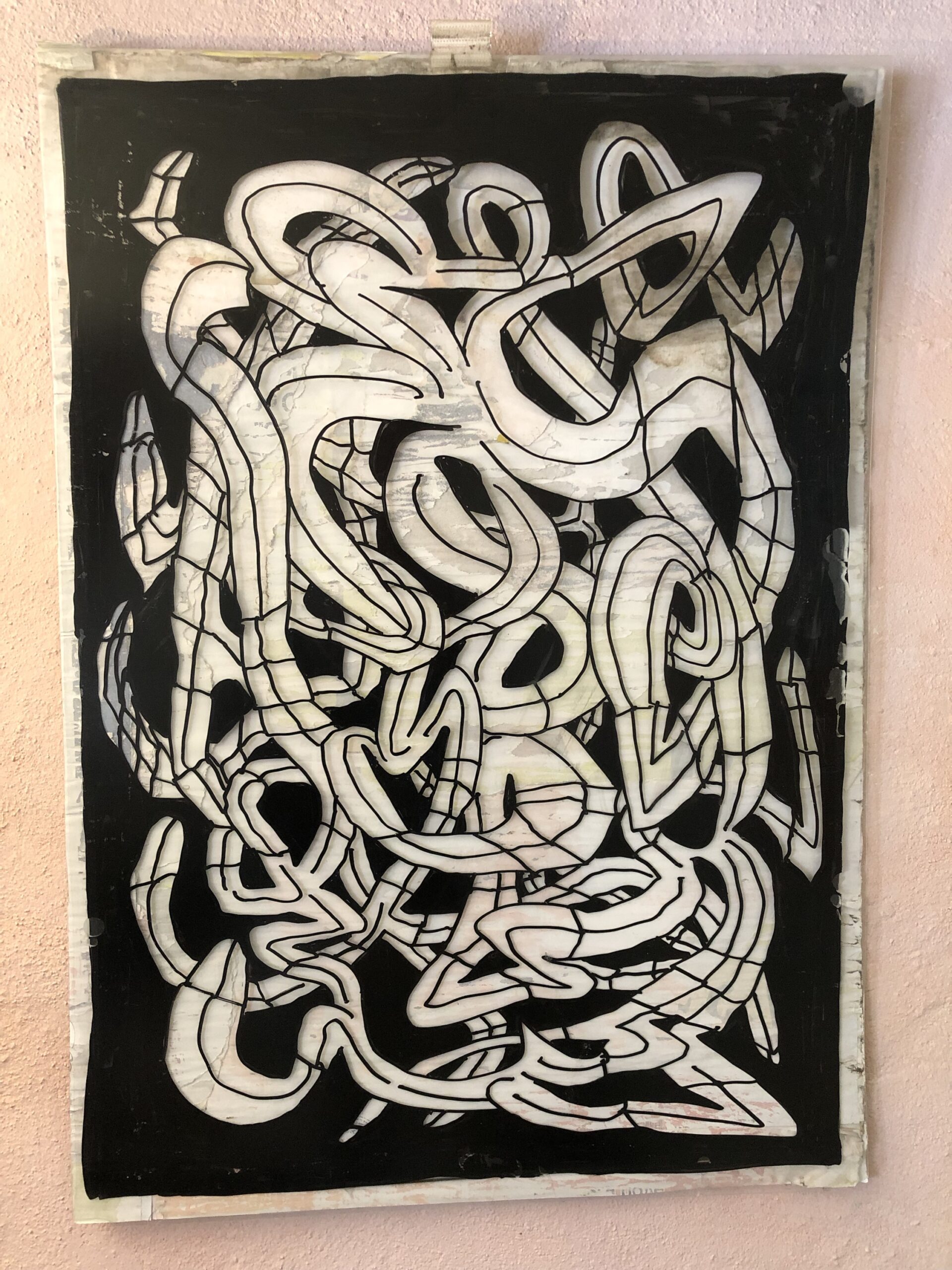 Tusch på frontplade monteret på gadeplakater. 63,5×88,5 cm.